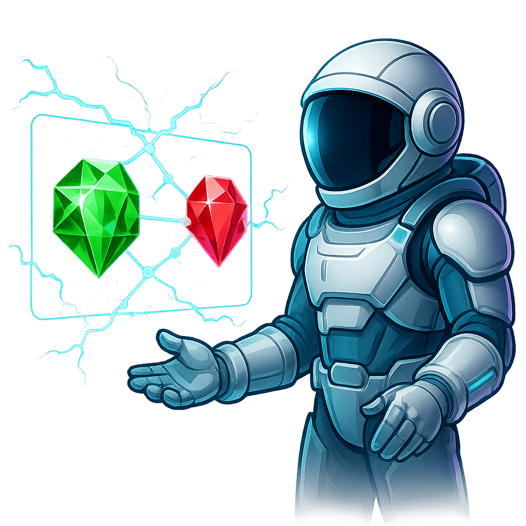 The payout potential of Astronaut cannot be seen through a paytable. Basically, you only depend on spins where a green crystal (you win), red (you lose), or gold (saves you) can appear.